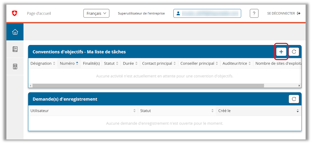 - Cliquez sur le signe « + » dans la section « Convention d’objectifs – Ma liste de tâches » :