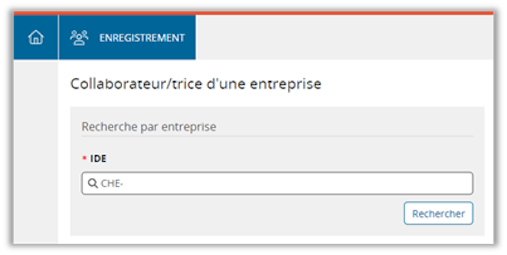 - Saisissez le numéro d'identification des entreprises (IDE) puis cliquez sur "Rechercher":