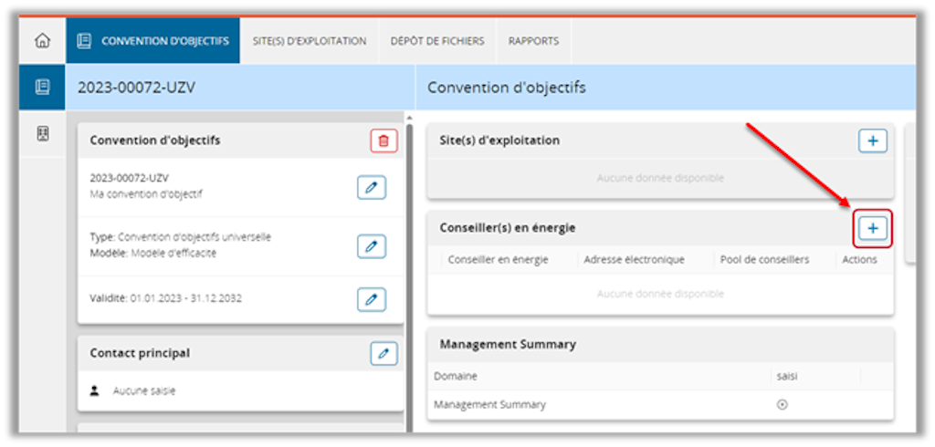 - Cliquez sur « + » dans la section «Conseiller(s) en énergie» :